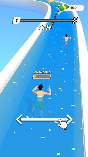 疯狂游泳游戏是一款非常恶搞又有乐趣的休闲游戏。在赛道里面可以需要疯狂的游泳去争抢道具,有了道具之后可以阻挡其它游泳选手前进。当你能量满了之后就开始放屁来获得推荐的能量,可以让你快速的前进,超过其它游泳选手。