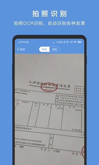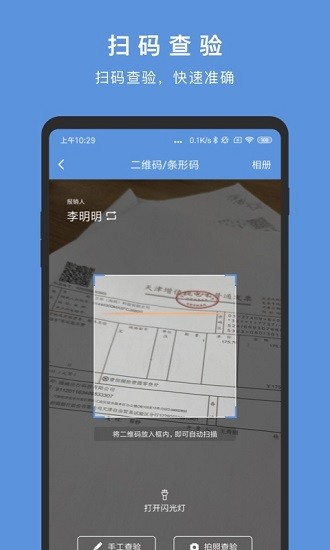 2、操作便捷,用户只需要通过软件扫描发票的二维码就可以查验发票真伪及发票所有的票面信息;