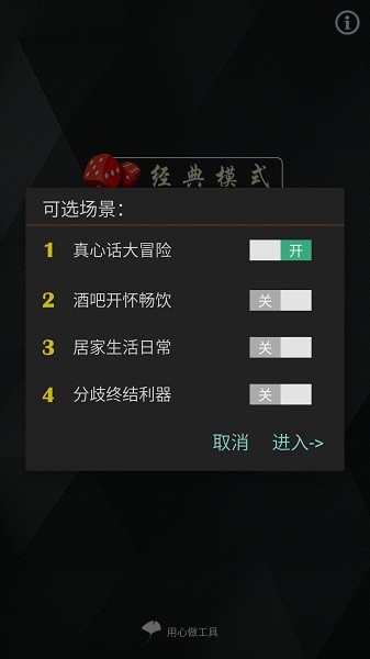 真实骰子是一款支持经典模式(1-6粒骰子),场景模式(真心话大冒险等)和决策模式玩法的免费工具,方便您的娱乐生活
