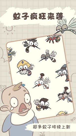 一款夏日应景的爽快打蚊子游戏,结合挂机和点击消除的休闲游戏。逗比的角色设计和道具,多种模式关卡和多变的玩法。