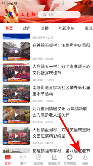 1、打开云上南部APP,点击底部导航栏的我的,进入个人页面。