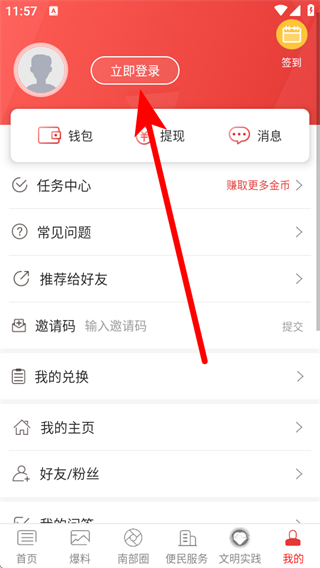 1、在云上南部app首页,点击右下角我的按钮,进入个人中心界面。