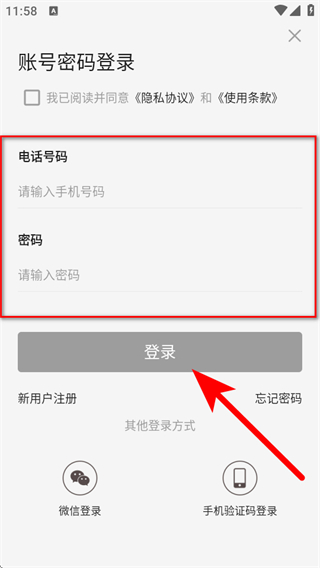 4、在该页面输入电话号码、密码,点击登录完成账号密码登录操作。