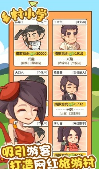 村里的孩子没学可上,为了孩子们的未来,来建造我们自己的乡村小学吧!建造不同的学校设施,培养孩子们的能力,德智体美劳全面发展。向社会输送人才,解锁数百种的职业,让孩子们走上完美人生。培养员工,招募游客,打造全方位的旅游度假村,为学校募集更多资金。