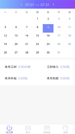 【记工时】简介明亮的界面设计,加班工资智能计算,补贴扣款自定义添加,加班备注提醒重要信息!