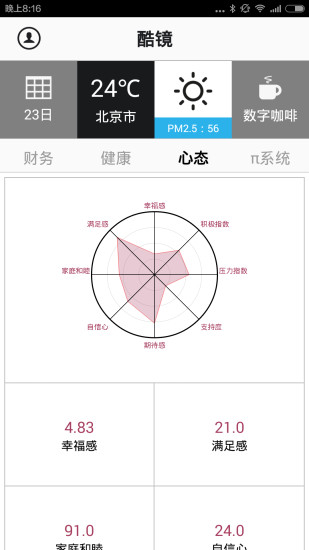 3.心态:对八个维度的个人心态进行评估,并提供与周围人之间的比对情况;