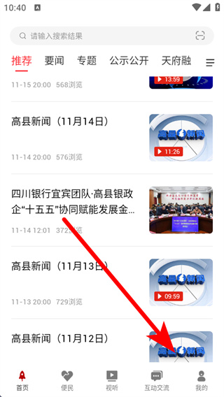 1、打开高县融媒APP,点击右下角我的,进入个人页面。