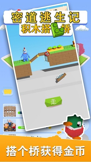 密道逃生记玩家需要选择正确的乐高积木搭建桥梁救出小女孩,玩家成功搭个桥就会获得很多的金币哦,这些金币能够购买道具还能够买配件,所以是越多越好,游戏获胜后也会获得金币,游戏操作简单,趣味十足,欢笑不断,听起来是不是非常的有意思呢?那就快来下载吧!