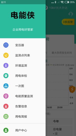 电能侠app,是企业的用电好管家,提供了精细化用电管理方式,能够实时检测企业用电情况,帮助企业实现高效用电,节能用电,将每一度电都利用最优化