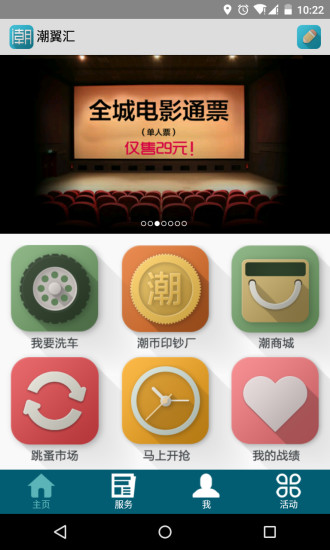 潮翼汇,是一款专门为汕头地区智能手机用户量身定制的本地生活服务应用,紧跟电子商务O2O这一时代大趋势,结合了本地化、互动化的服务内容,主打“全民免费吃喝玩乐”这一特色主题,用户通过“潮币印钞机”赚取足够潮币,可以在“马上开抢”中选择自己喜欢的礼物,最终在幸运大转盘中赢取免费兑换的宝贵机会。
