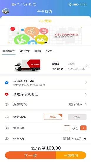 牛牛拉货是一款物流类的手机app,你在这里可以下单运送你的要的物流的服务,平台会马上处理,快速为你叫车,你在这可以自由的选择车型,每一种车型的价格平台都有标注,绝不乱收费,你还在等什么呢,看点来下载体验吧!
