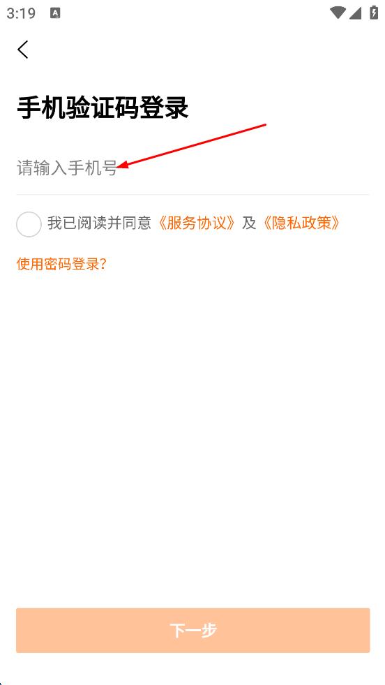 3、输入手机号码后,勾选“我已阅读并同意服务协议及隐私政策”,然后点击“下一步”按钮,按照软件提示完成后续验证操作,即可完成登录。