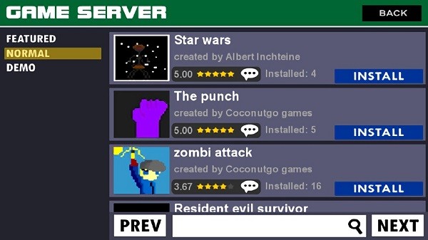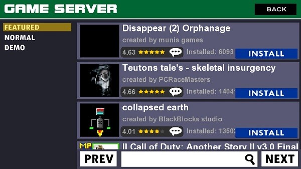 1.程序中根据模组的作用分类进行了区分,玩家可以选择不同的模组或者自己在现有的模组上进行大幅修改来创造出自己的像素FPS游戏;