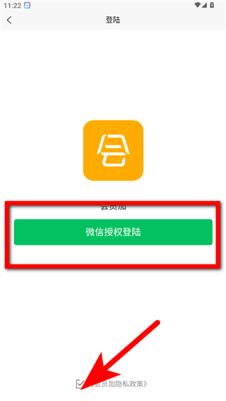 3、在登陆界面,勾选同意《会员加隐私政策》后点击微信授权登陆按钮。