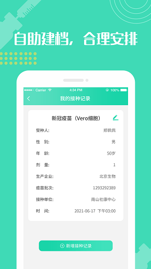 预防接种疫苗预约,时刻关注大家的身体健康。用户下载注册登陆之后录入相关信息,即可查询到以往各种疫苗历史数据,及时补针,非常方便;同时还支持用户自主建立疫苗档案,轻松管理疫苗信息,下次查询更迅速。有需要的用户欢迎下载app进行使用。