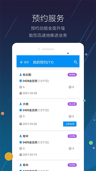 汇宜佳是一款专门为工作人员开发的app,在这里,用户可以管理自己的客户,并且实时更加客户,不仅如此,软件还提供了数据统计,你可以清晰的看到自己的业务数据,让人一目了然,你还在等什么呢,快点来下载体验吧!
