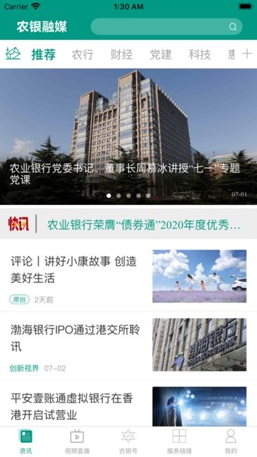 农银融媒app官方是非常不错的手机资讯阅读平台,清晰的页面设计感方便用户查找自己喜欢的专题版块,实时更新给你一手消息推荐。且体积小,也方便用户进行下载安装,智能化推荐服务能够带给用户更好的体验,需要就赶紧来下载吧!