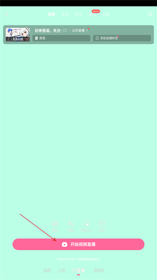 3、在直播界面中,确认设置后,点击开始视频直播按钮,即可开启直播。