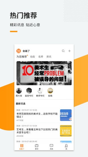 会画了大众版是一款专注于美术绘画教学服务的画画app。整合了国内外海量优秀的绘画素材资源,还有专业的艺术大师在线授课指导,学员们可以在线查看喜欢的绘画作品进行学习。是美术生必备的学画画软件。欢迎大家免费安装使用。