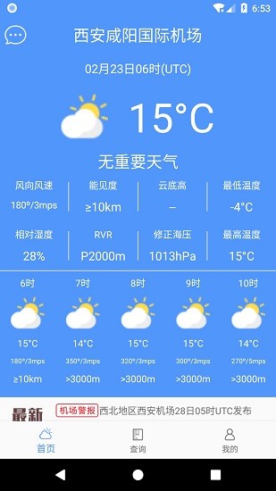 西北航空气象软件安卓版提供了便捷的航空气象服务,支持在手机上查看机场的天气预报,可以自动定位附近的机场,还可以自由切换,可以看到详细的卫星云图和雷达图,有异常天气会提前收到预警信息,欢迎大家下载体验!
