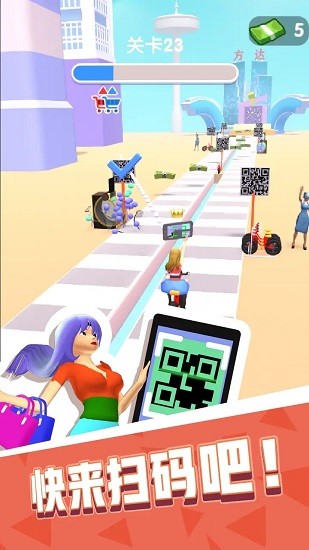 码上抢购是一款全新上线的休闲跑酷类手游,清新的游戏画风加上趣味十足的休闲玩法更有简单的操作方式以及多种模式选择,玩家可以不断扫描其他人的二维码赚取金钱兑换各种时装,上手容易可玩性高随时随地都可以轻松加入感受游戏的乐趣。喜欢的玩家赶紧来下载吧!