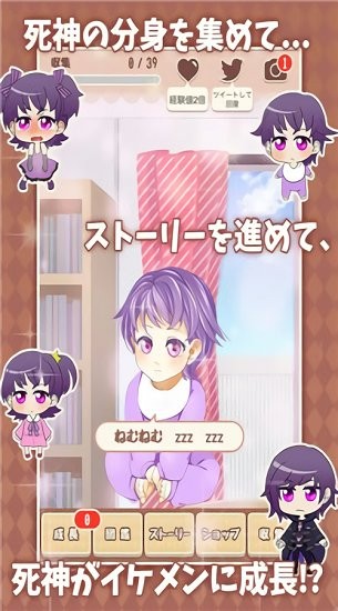 4.游戏中玩家的养成对象是可爱的小死神,你需要将他从小养大并展开恋爱剧情,休闲的放置玩法让你解放双手。