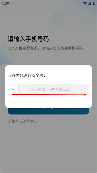2、完成手机号码填写与协议勾选后,点击下一步按钮,页面弹出安全验证窗口,按住滑块拖动到最右边完成验证。