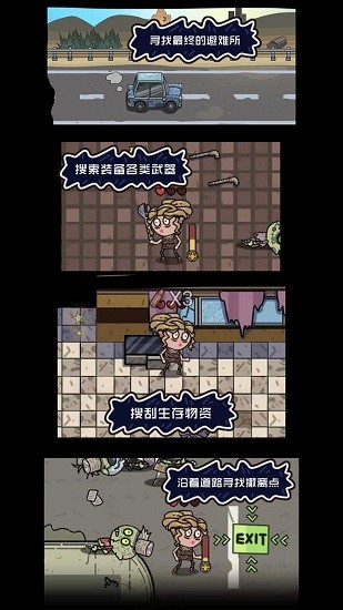 这是一款僵尸题材的生存游戏,玩家扮演的是一个幸存者独身一人出发前往避难所,途中遭遇各种各样的情况。游戏主要由文字冒险与即时战斗两部分组成,遭遇到的文字冒险事件与即时战斗场景元素均为随机生成,每次都有不同的游戏体验。