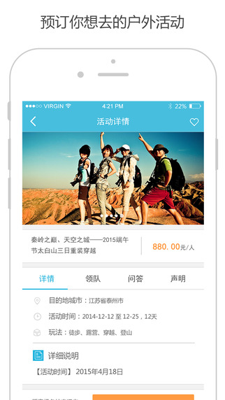 鲜行提供户外活动的出行平台。我们鼓励大家积极参加户外活动,认识更多朋友,塑造更健康的身心。