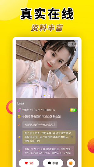 【实名认证】:全面认证体系,为你筛选出有诚意合适的对象,让你爱起来。