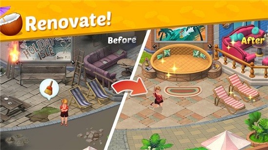 --您可以在游戏过程中收集资源,改造和重新设计海岛酒店,恢复度假村昔日的辉煌