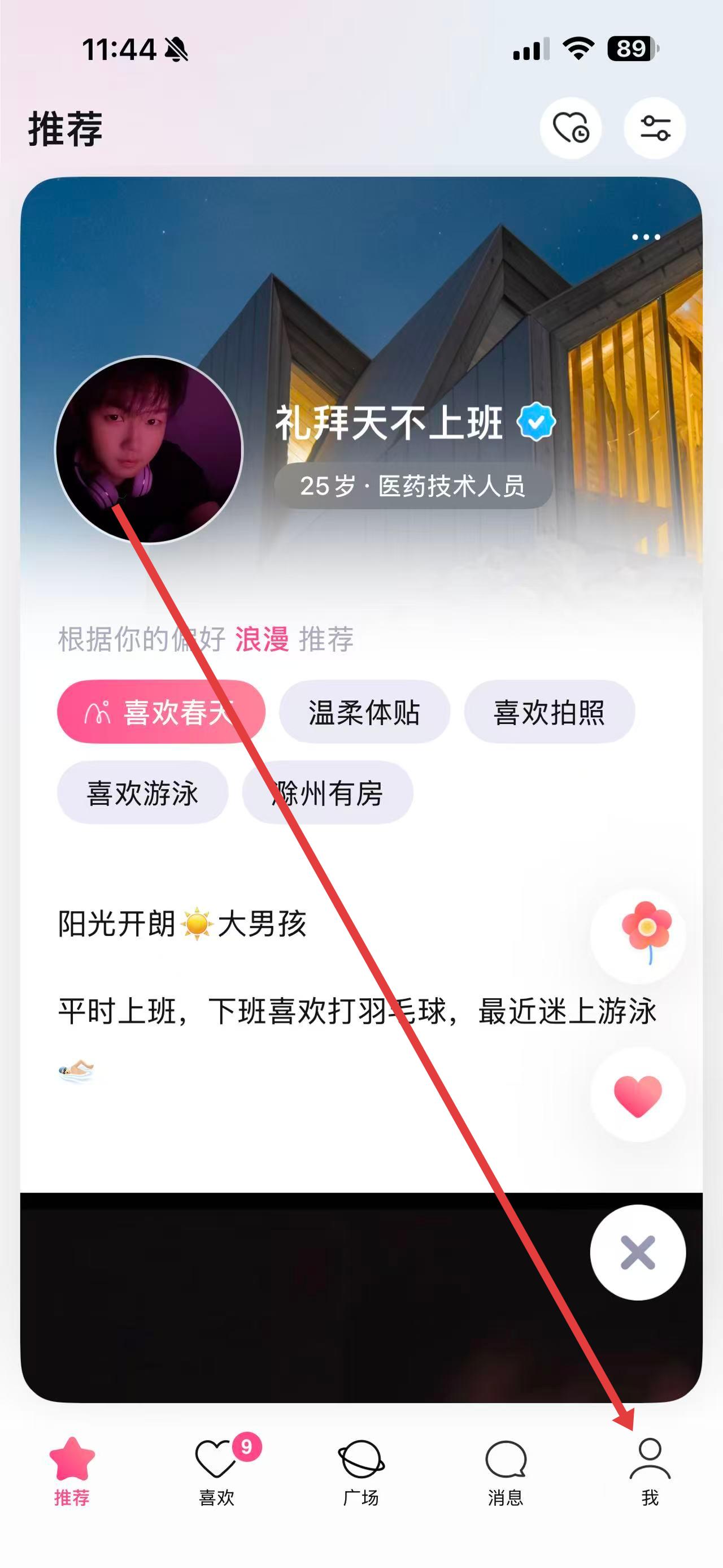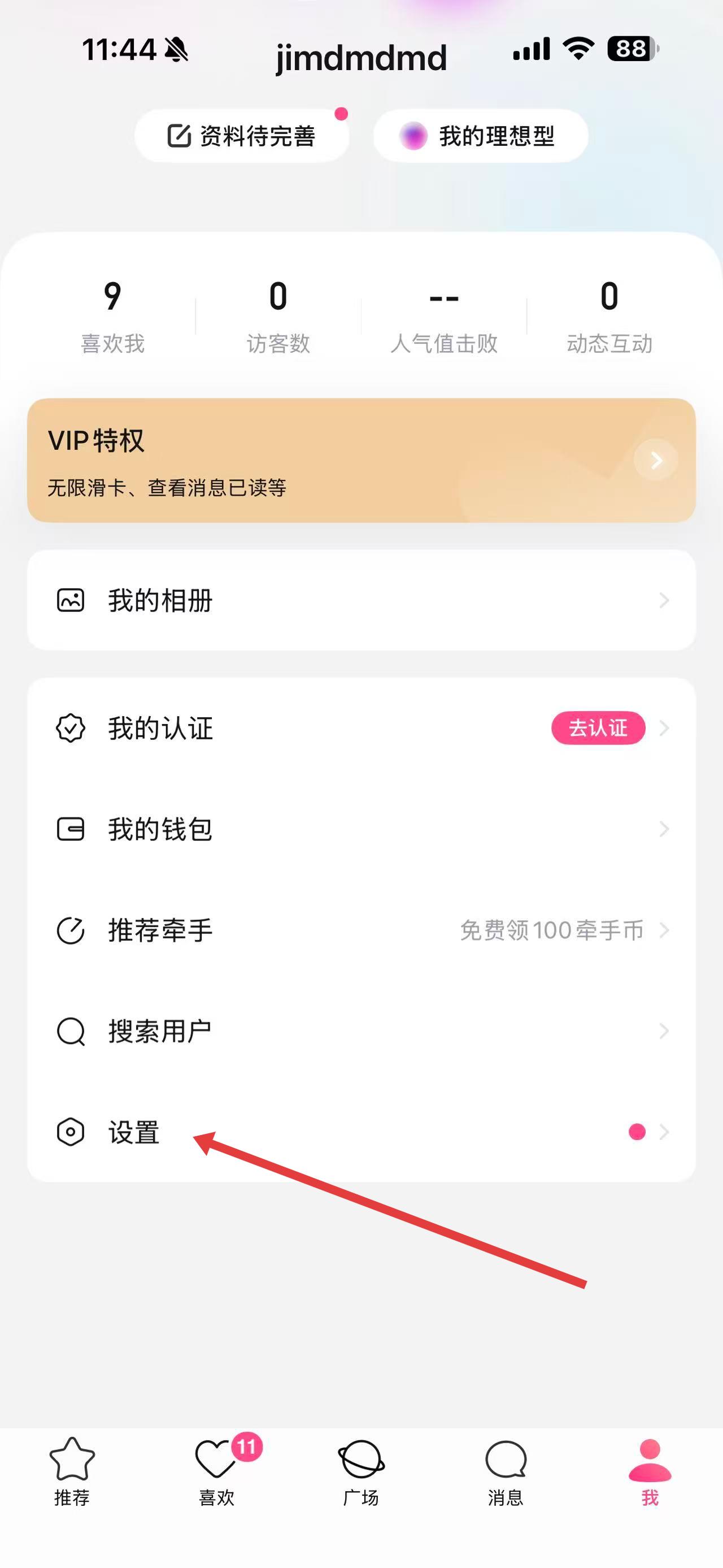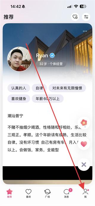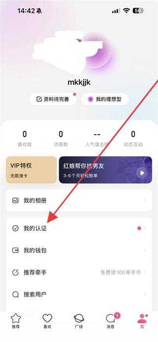 1、打开牵手App,点击底部导航栏的我选项,进入个人页面。