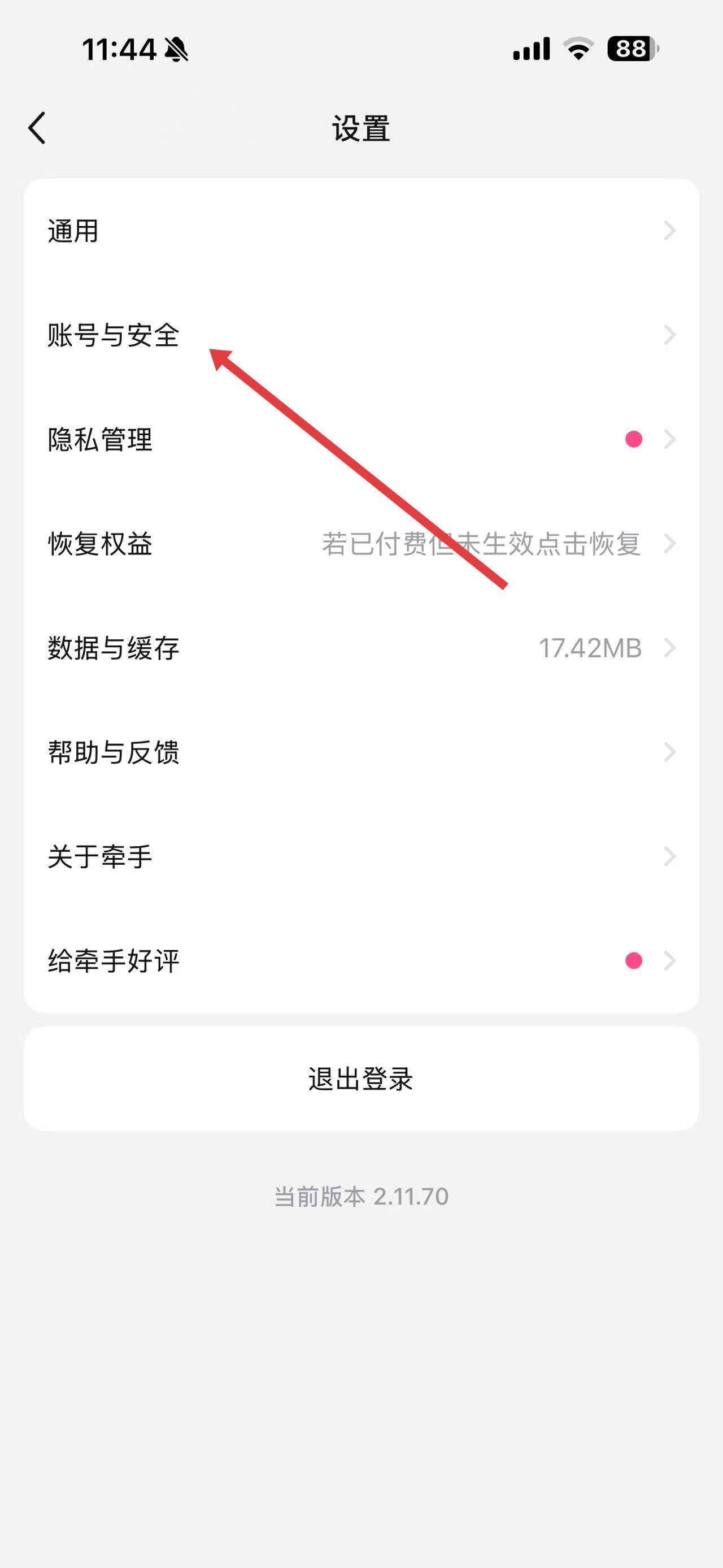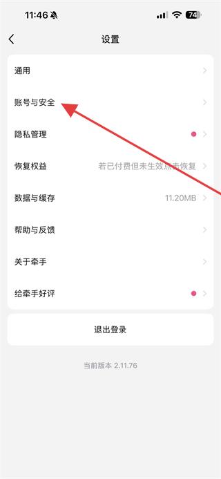 3、在设置界面里,点击账号与安全,进入账号安全相关设置页面。