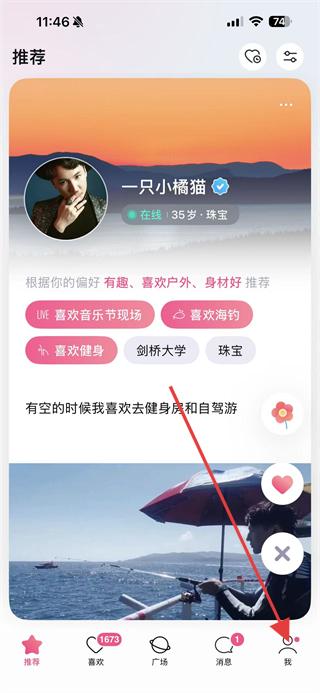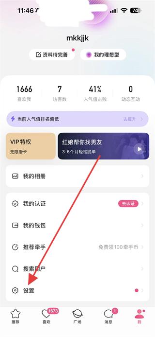 1、打开牵手app,点击底部导航栏最右侧我,进入个人页面。