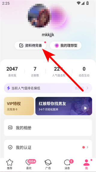 2、在个人页面中,点击资料待完善选项,进入编辑资料页面。