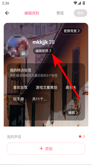 3、在编辑资料页面,点击编辑昵称选项,进入昵称修改页面。