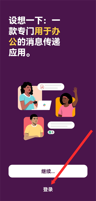 1、打开Slack应用,我们需要页面中的点击登录按钮。