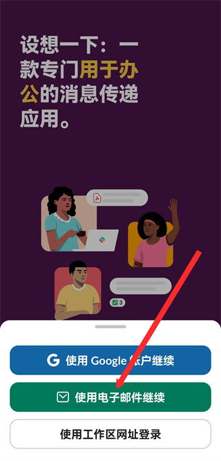 2、在登录的方式选择中,我们可以点击使用电子邮件继续。