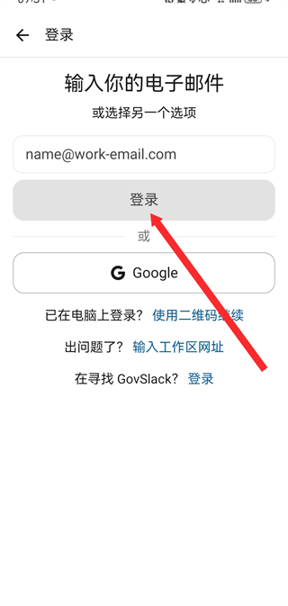 3、进入页面输入工作邮箱,点击登录,按照后续提示完成登录操作即可。