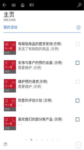 从方便易用的主页访问您的活动、帐户、联系人和潜在顾客