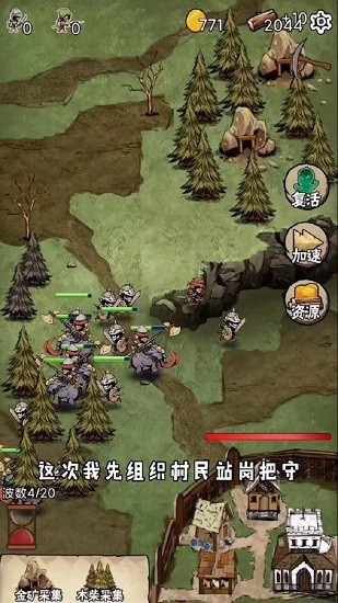 守卫村庄是一款塔防类的手机游戏,你在游戏中将作为村民来守护你的村庄,在僵尸进攻之前,你需要采集矿物来修建防守措施,建造各种防御塔来抵挡敌人的进攻,而且你还可以制造士兵直接出去击杀僵尸,游戏玩起来非常的有意思,你还在等什么呢,快点来下载玩玩吧!