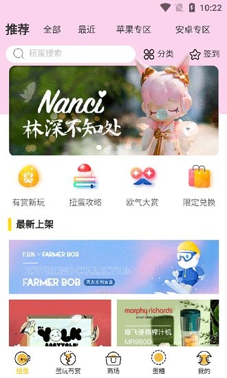 一款将扭蛋元素与购物相结合的有趣消费商城,来趣玩蛋蛋app体验扭蛋的乐趣,开启更多惊喜好礼,不仅有玩具更有美妆潮品,欢迎下载.