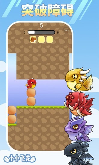 2、在游戏过程中,飞龙需要翻越各种障碍,最终到达终点,整个路程非常刺激,画面非常可爱