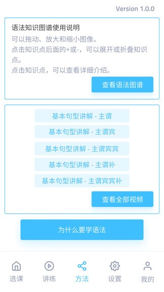 记忆者语法版app主要提供语法方面的知识学习,这里有详细的语法知识图谱,支持放大缩小和拖动,每一个知识点都附有详细的介绍,支持在线学习和练习,还有贴心的语法视频解析,喜爱的朋友赶快下载体验吧!