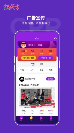 全民代言是依托于社交网络的社交广告APP,您可以通过宣传广告主发布的广告并邀请好友应援成为代言人,并赚取代言费R币。R币可以用来在全民代言商城中兑换商品、也可以用来赠送好友。同时,您还可以通过全民代言发布、宣传公益广告,献出一份爱心。