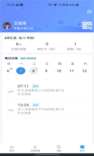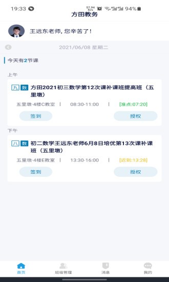1、教师可以在这里查看今天的课程信息,这样就能知道自己的课程了;