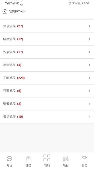 2、清晰丰富的审核中心流程,这里有立项流程、结案流程以及作废流程等列表内容。