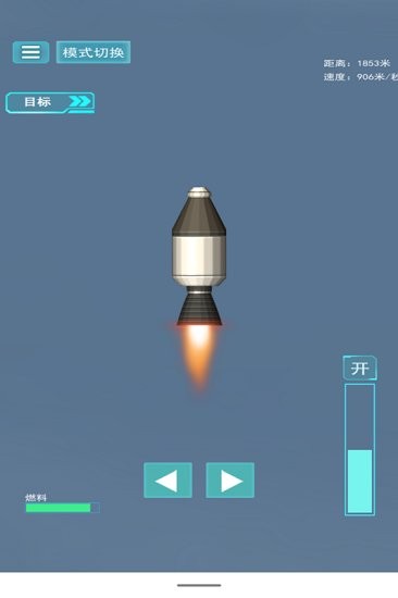 1、发射:点击喷射器可以打开发动机,点击off和on可以打开关闭燃料,滑动可以加大推力但是燃料消耗更快,跟着箭头的指示奔月把。