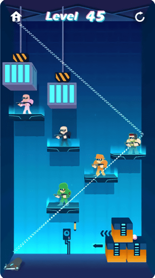 3、自己需要去利用各种不同的武器装备来消灭所有的敌人,消灭敌人之后可以进入到更多的关卡中。