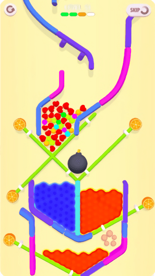 弹珠up是一款休闲类的手机游戏,你在游戏中需要移动开不同的横杠,让弹珠落入到正确的槽子里面,游戏玩起来非常的轻松,多彩的色彩让你眼睛也得到了放松,不仅如此,后面的关卡难度也提高了,能够让你脑洞大开,你还在等什么呢,快点来下载玩玩吧!
